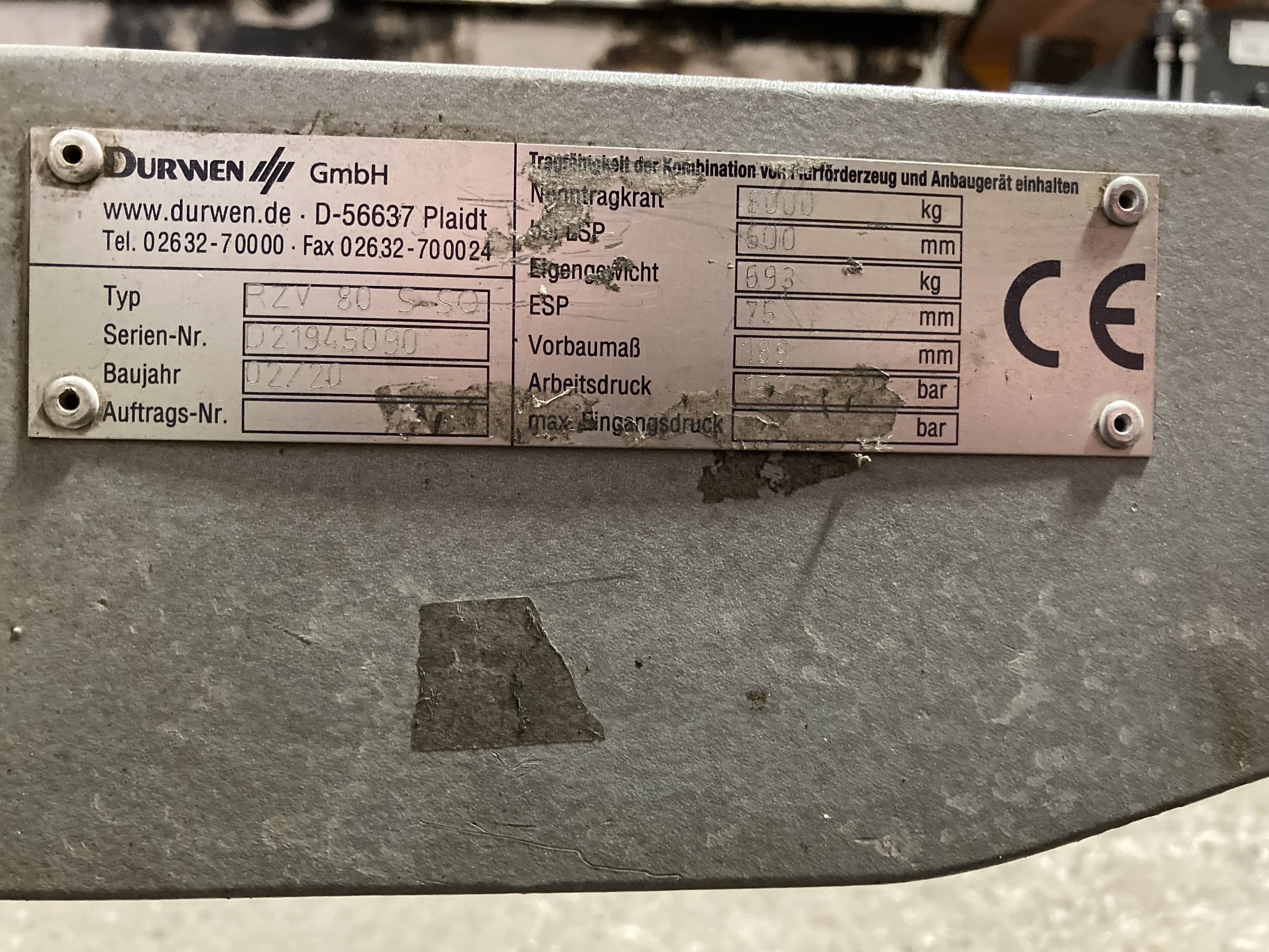Z.g.a.n. Durwen RZV80-S vorkversteller / sideshift / FEM 4A / Bouwbreedte 1.860 mm / bouwjaar 2020!