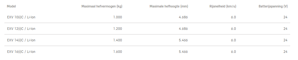 De EXV iGo biedt flexibele bediening met één hand, geschikt voor links- en rechtshandigen. Elektrische functies en het kleurenscherm met accustatus zorgen voor ergonomisch, overzichtelijk werken.