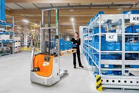 De EXV-stapelaar van STILL met OptiSpeed-dissel past automatisch zijn snelheid aan de afstand tot de bestuurder aan. De ergonomische dissel maakt intuïtieve bediening met één hand mogelijk. Met LED-display, hoge stabiliteit, daaldemping en groot restdraagvermogen combineert de EXV veiligheid, precisie en wendbaarheid in krappe magazijnruimtes.