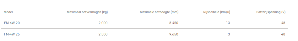 De STILL FM-4 W biedt krachtige acceleratie en een rijsnelheid tot 13 km/u voor snel en efficiënt transport. De stabiele mast tilt ladingen tot 9,5 meter met een hoge restlastcapaciteit tot 1.000 kg. Met batterijopties van 465 tot 930 Ah garandeert hij langdurige inzetbaarheid bij diverse toepassingen.