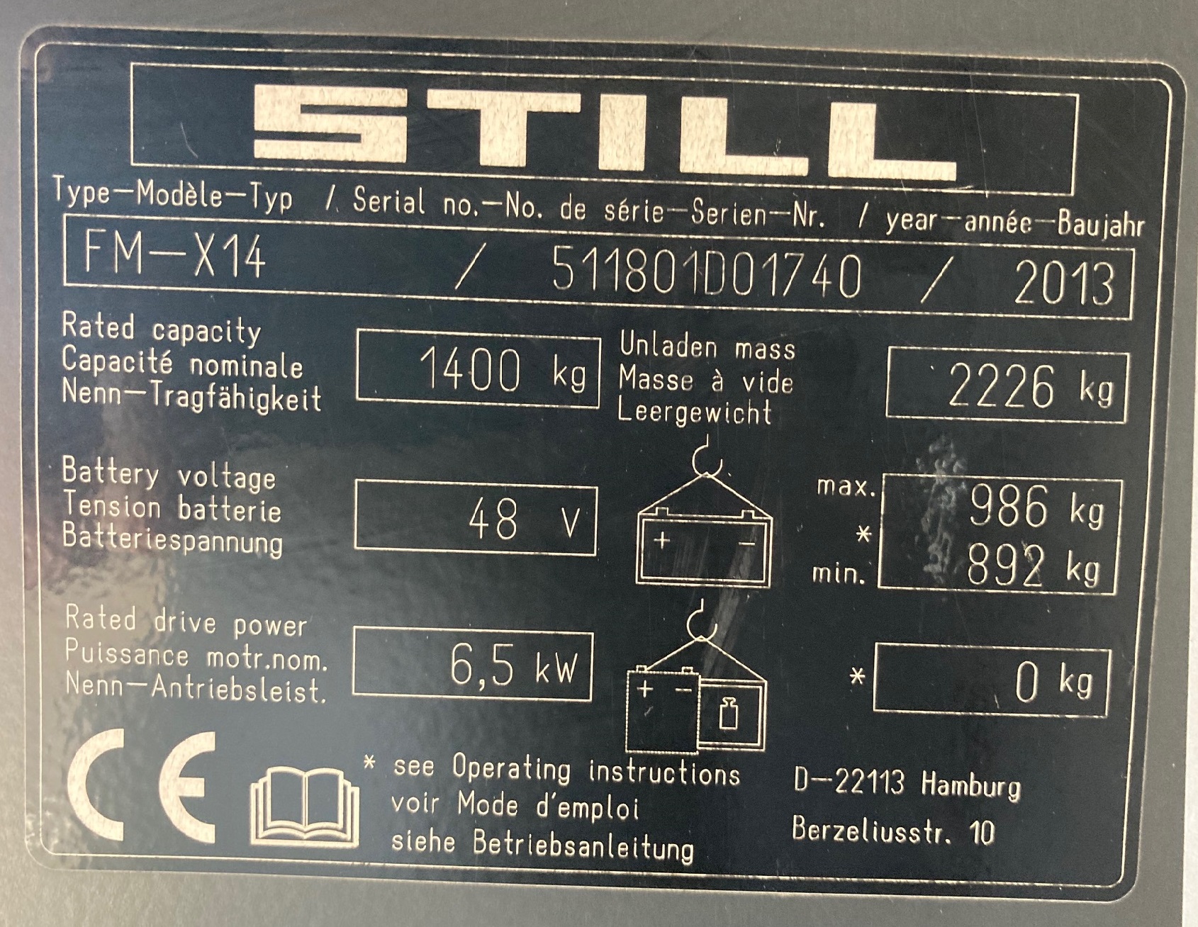 Nette FM-X reachtruck van 2013 met o.a. de volgende accessoires: Neigassistent en automatische middenstand hefmast / achteruitkijkspiegel / mast sideshift / 360 graden besturing met omkeerbesturing en Fingertipp bediening