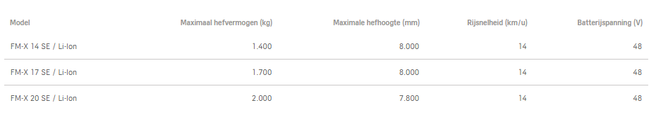 Krachtige acceleratie en rijsnelheden tot 14 km/u zorgen voor efficiënt transport. Met accucapaciteiten van 560 tot 700 Ah en snel oplaadbare Li-ion-technologie blijft de truck continu inzetbaar, ook op oneffen terrein.
