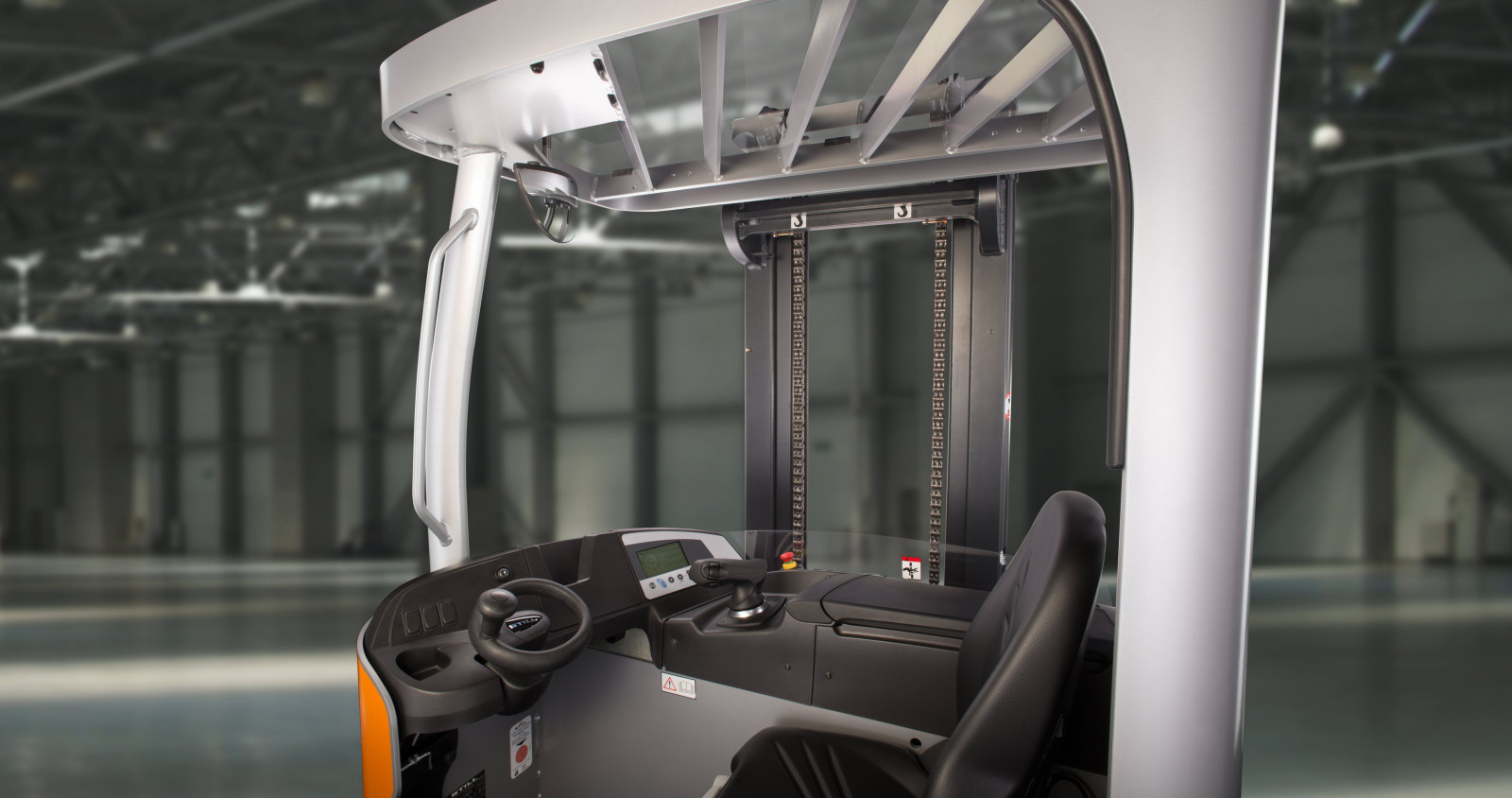 Superelastische banden en een gedempt aandrijfwiel garanderen comfort. De verstelbare stoel en Joystick 4Plus maken nauwkeurig werken eenvoudig, met ontspannen zicht op de lading.