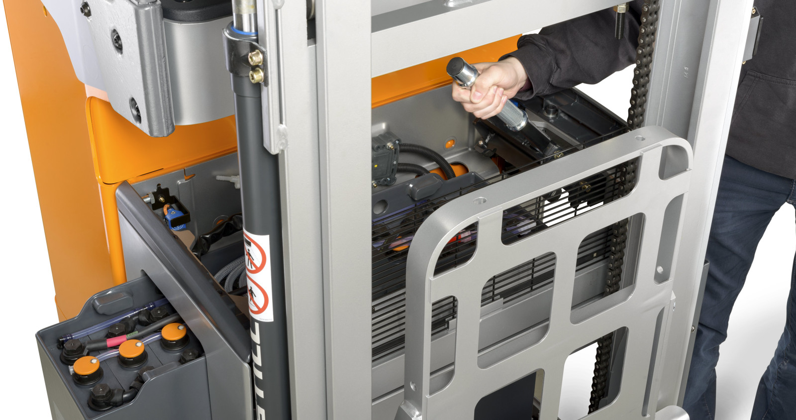 Alle functies zijn met één hand te bedienen via de joystick. Proportionele ventieltechnologie zorgt voor soepel heffen en dalen. De Blue‑Q‑modus bespaart energie, terwijl stille motoren en recyclebare materialen duurzaam werken mogelijk maken.