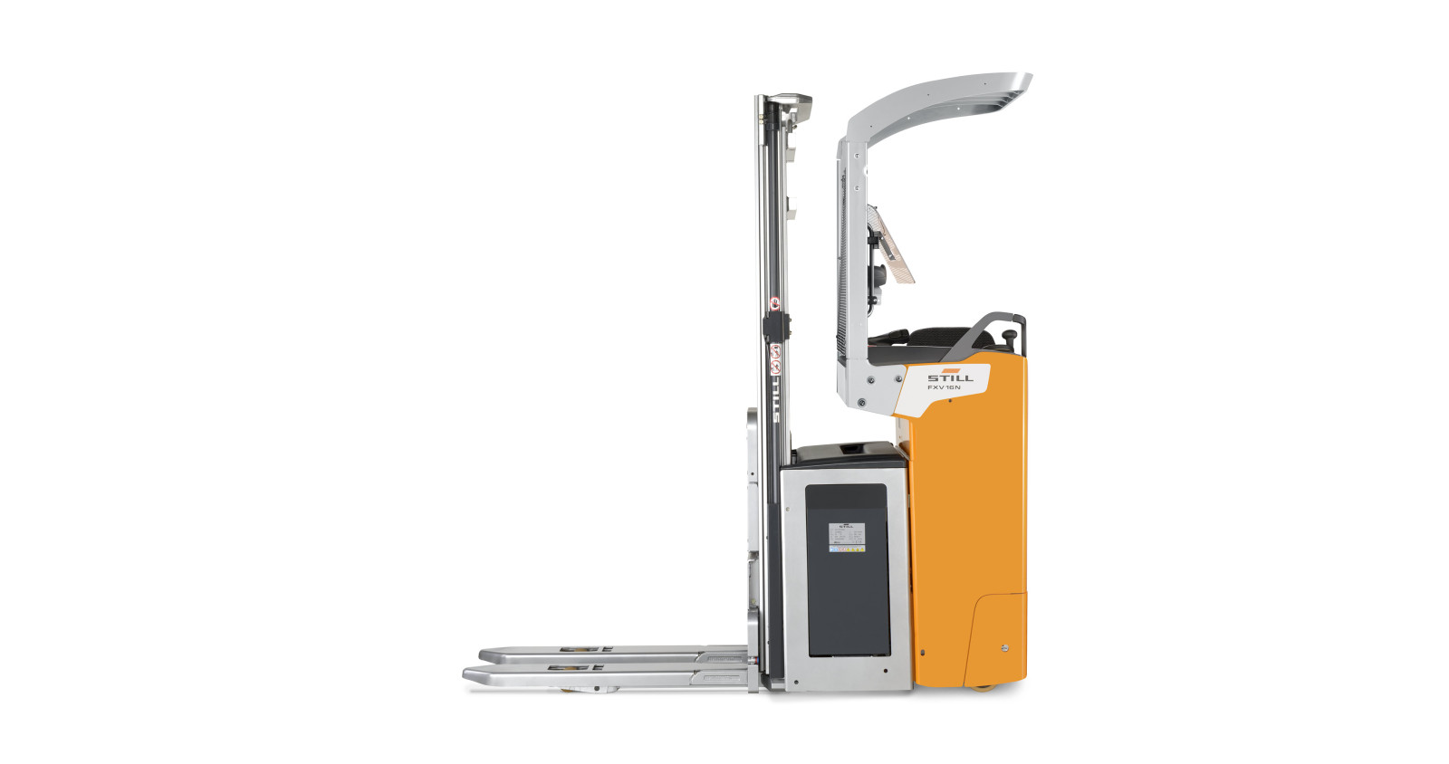 De energiezuinige FXV 14-16 N van STILL tilt tot 1.600 kg naar meer dan vijf meter hoogte en haalt 10 km/u met automatische snelheidsreductie in bochten. Compact, wendbaar en flexibel qua bediening, biedt hij keuze uit stuurknop of stuurwiel en extra comfort met de optionele Joystick 4Plus voor precieze controle.