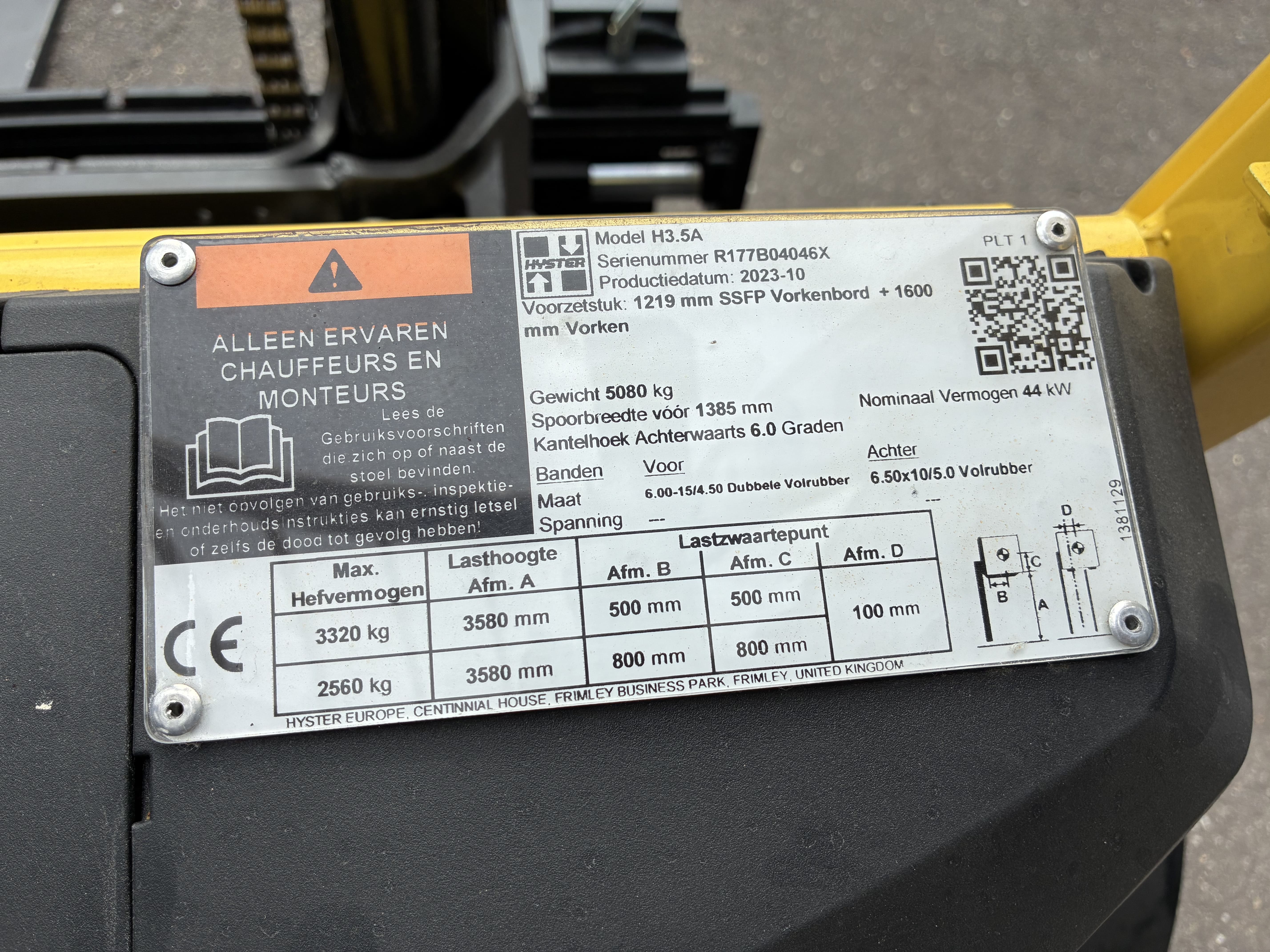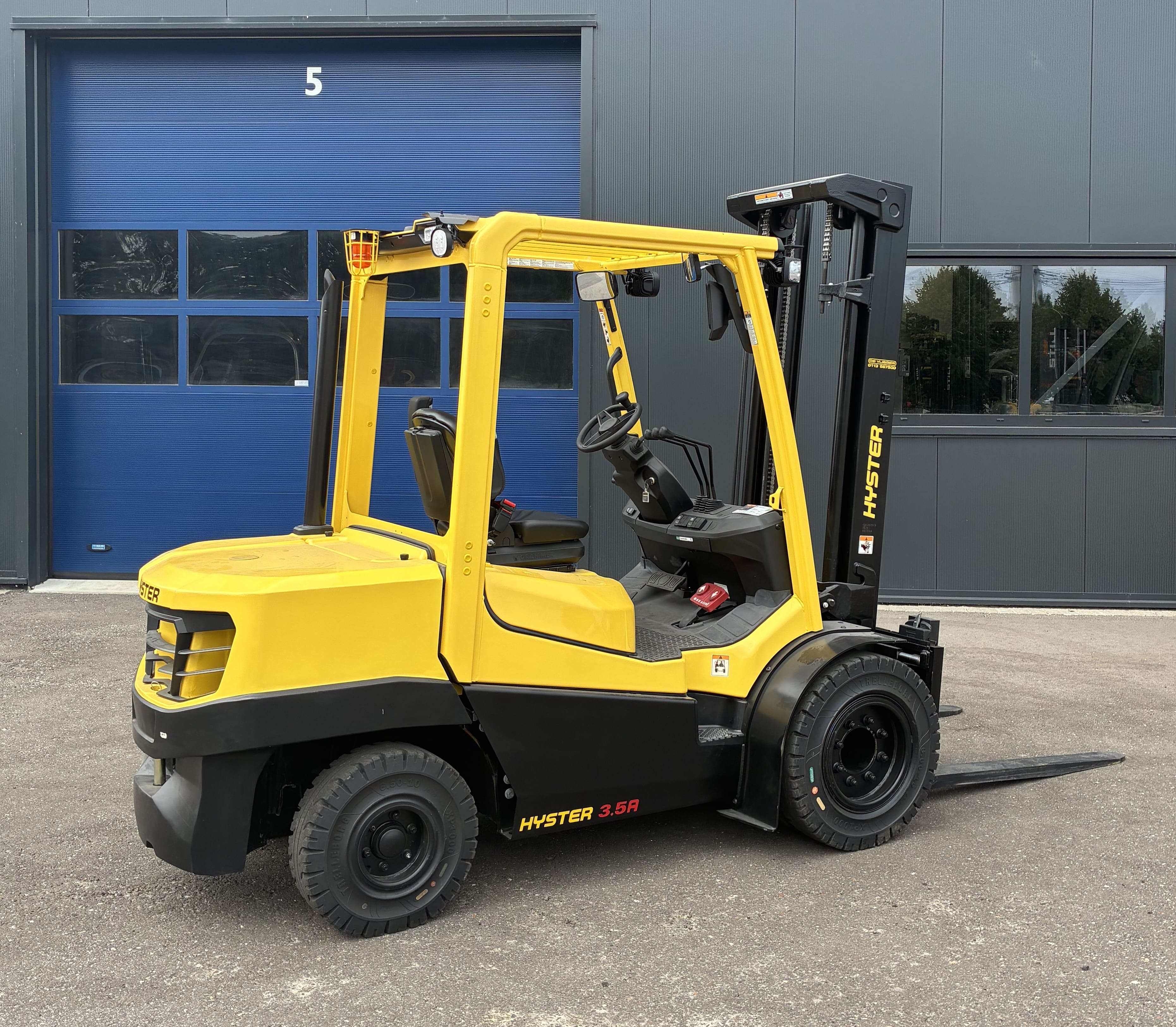 Nieuwe Hyster H3.5A uit voorraad. Dubbele montage op de vooras / volledige wegverlichting / standaard mechanische hendels / geen weersbescherming / 3 functies / monotrol.