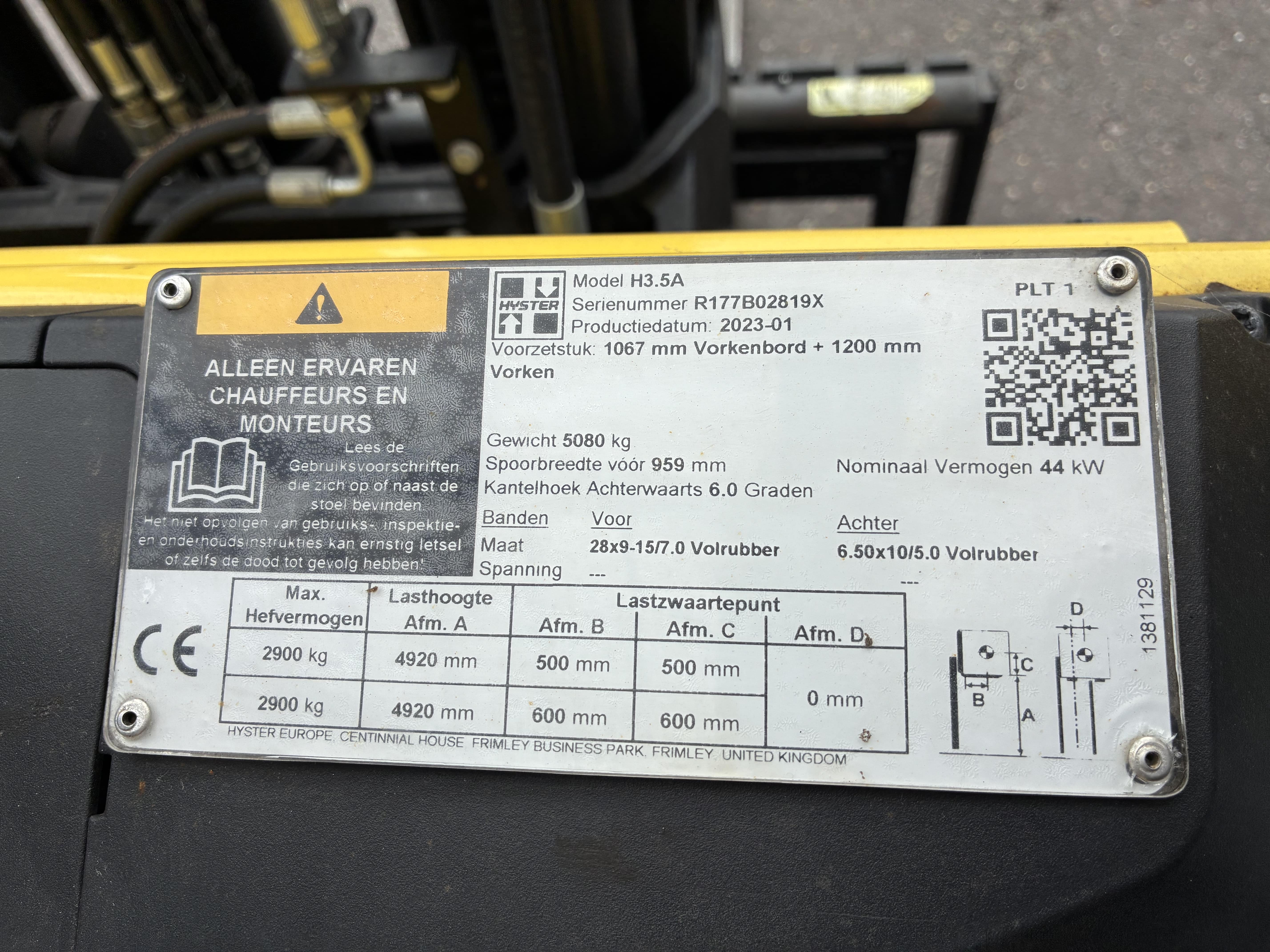 Nieuw uit voorraad leverbaar Hyster H3.5A diesel heftruck - 4 hydraulische functies - mechanische hendels - verlichting voor - verlichting achter - 4.920 mm hefhoogte.