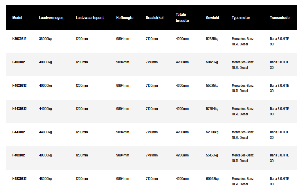 De zware masten en vorkenborden zijn ontwikkeld voor brede en speciale ladingen met lange lastzwaartepunten. Dankzij de robuuste mastkanalen, verlengassen en smeerbare lastrollen blijft de heftruck betrouwbaar onder extreme omstandigheden, met minimale doorbuiging en maximaal hefvermogen.