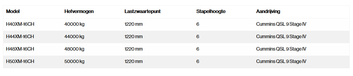 Om hoge prestaties te kunnen leveren voor werkzaamheden voor de eerste rij, kunnen de trucks van Hyster voor geladen containers rangeerwerkzaamheden betrouwbaar goedkoop en snel uitvoeren. Deze trucks voor geladen containers hebben een robuuste Hyster-mast en spreader en kunnen geladen containers 3, 4 en 5 hoog stapelen in de eerste rij met een brandstofbesparing van tot 20 %. Ze hebben de interesse weer gewekt van terminaloperators omdat ze sommige werkzaamheden sneller kunnen uitvoeren dan de meeste reachstackers als er geen containeropslag nodig is op de 2de/3de rij.