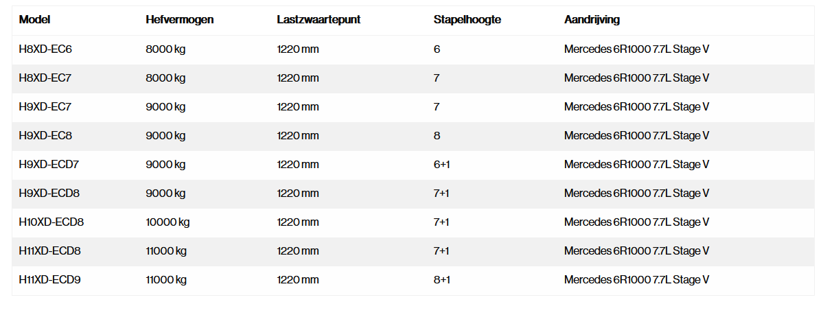 Bij het maar 3/4 hoog stapelen van lege containers kan de lichtere en compactere Hyster H6-7XD-EC lege-containertruck de kosten verder helpen te verlagen. De serie, gebaseerd op de H13-16XD-6-vorkheftruck, heeft een bewezen betrouwbaarheid en kracht voor de meest intensieve toepassingen van containerstapels tot 3/4 hoog.