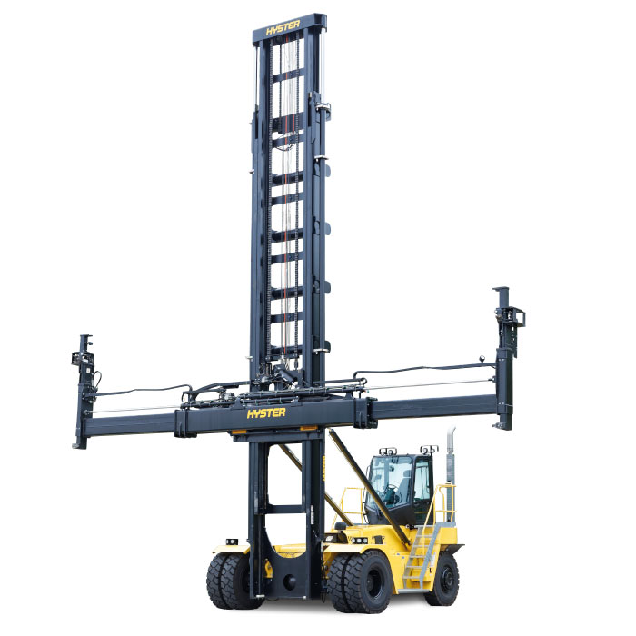 Het robuuste frame en de brede stuuras bieden uitzonderlijke stabiliteit en duurzaamheid, zelfs bij het werken met lege containers op maximale hoogte. De Vista-mast en verstelbare spreader maken het mogelijk om ISO-containers van 20 tot 40 voet veilig en nauwkeurig te hanteren.