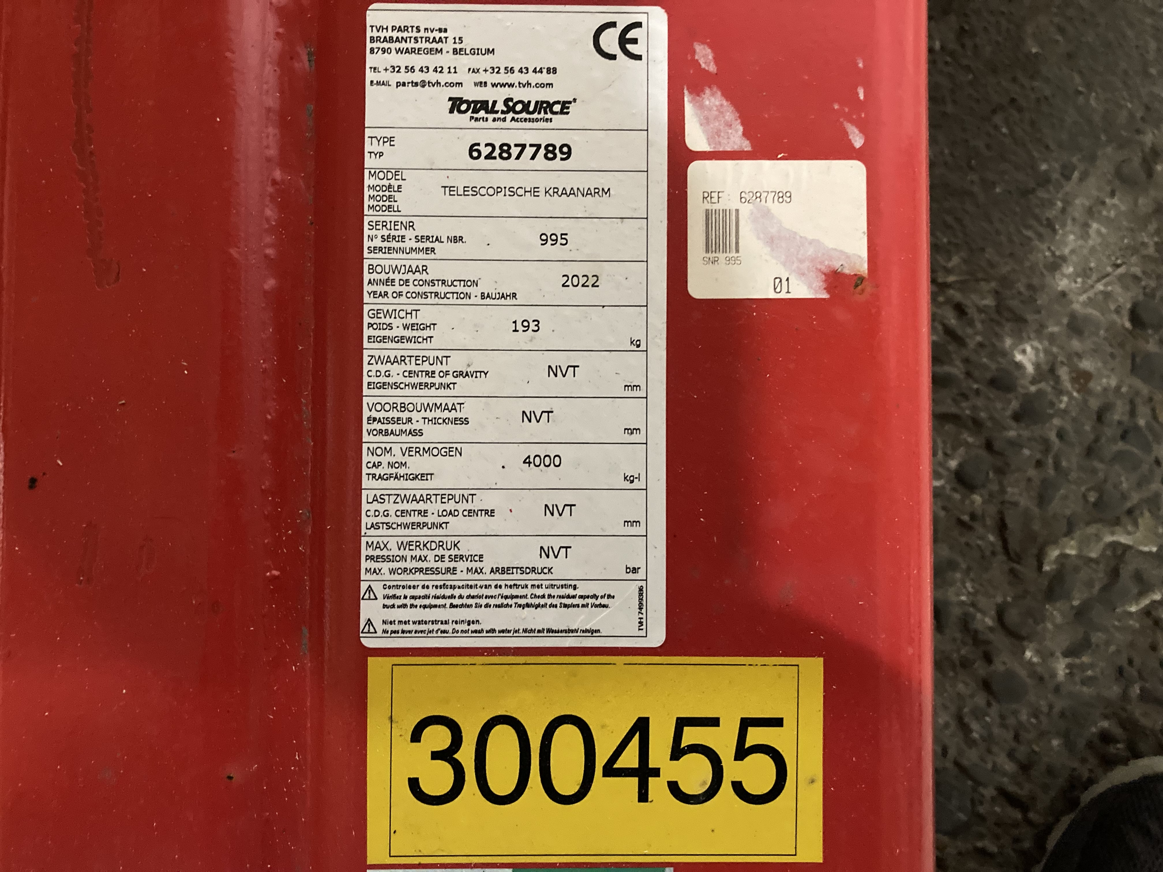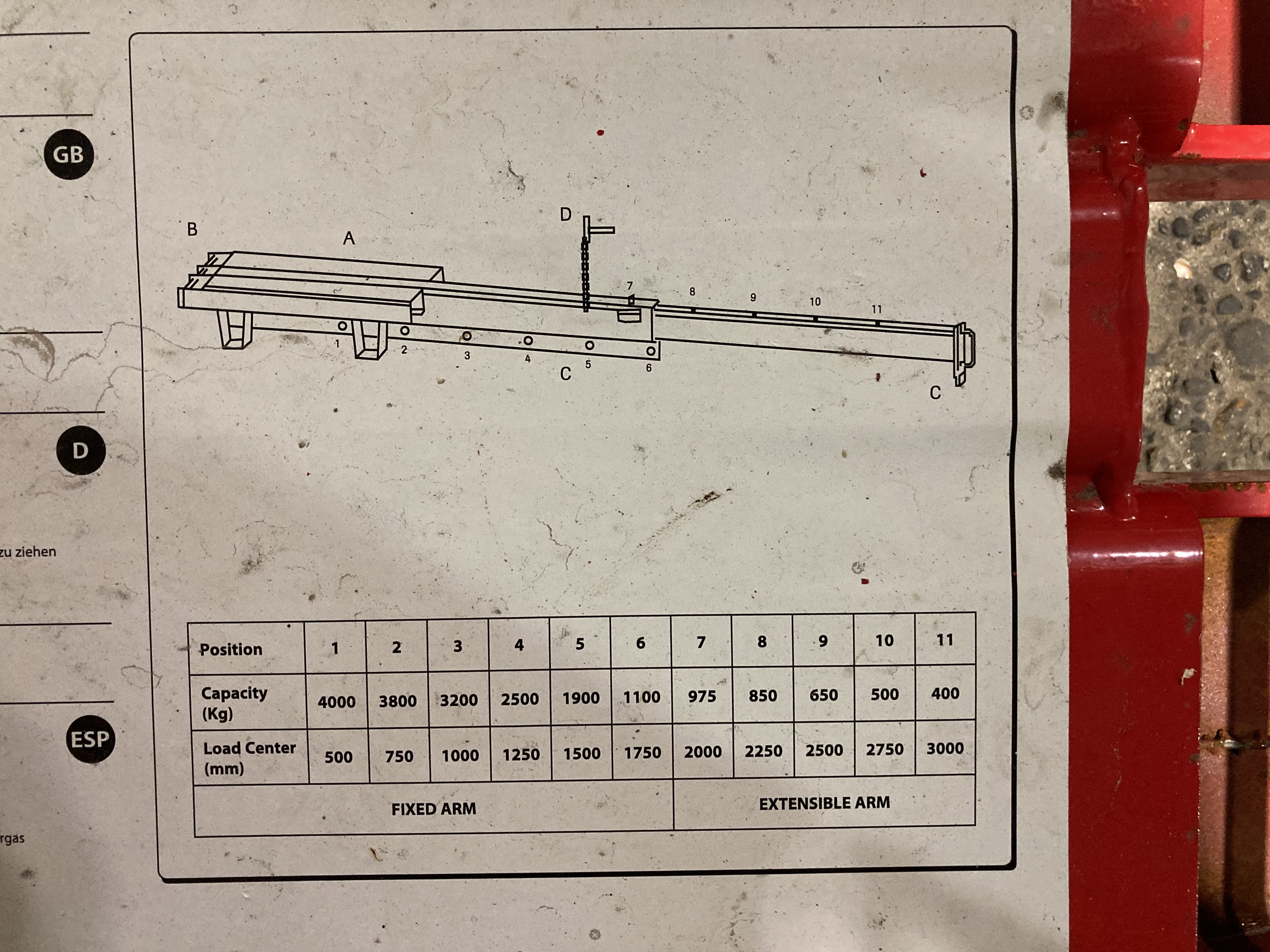 Manuele kraanarm, 4000 Kg capaciteit, verstelbaar over 500-3000 mm.