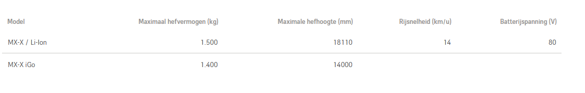 De MX-X levert topprestaties met OptiSpeed en Active Load Stabilisation. Dankzij het stevige chassis en hefhoogtes tot 18 meter benut hij de opslagruimte optimaal. Active Floor Compensation vangt vloeroneffenheden op, en Blue-Q bespaart energie zonder prestatiedaling.