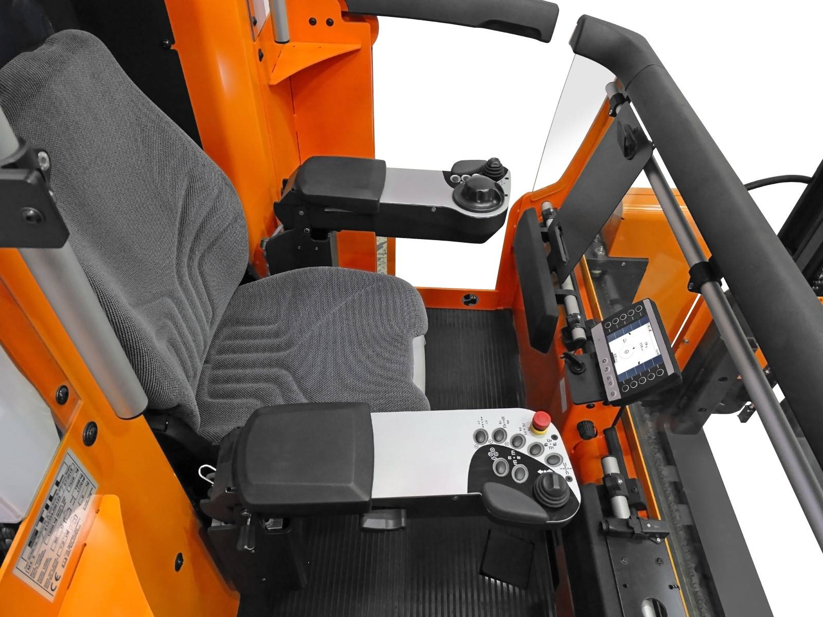 De tweehandsbediening met sensoren en het bewaakte accuslot verhogen de veiligheid. De schokdempende vloer en ruime voetruimte zorgen voor extra ergonomie. Veiligheidssystemen zoals Rescue Alarm, Safety Light en iGo pilot safety beschermen bestuurder en omgeving.