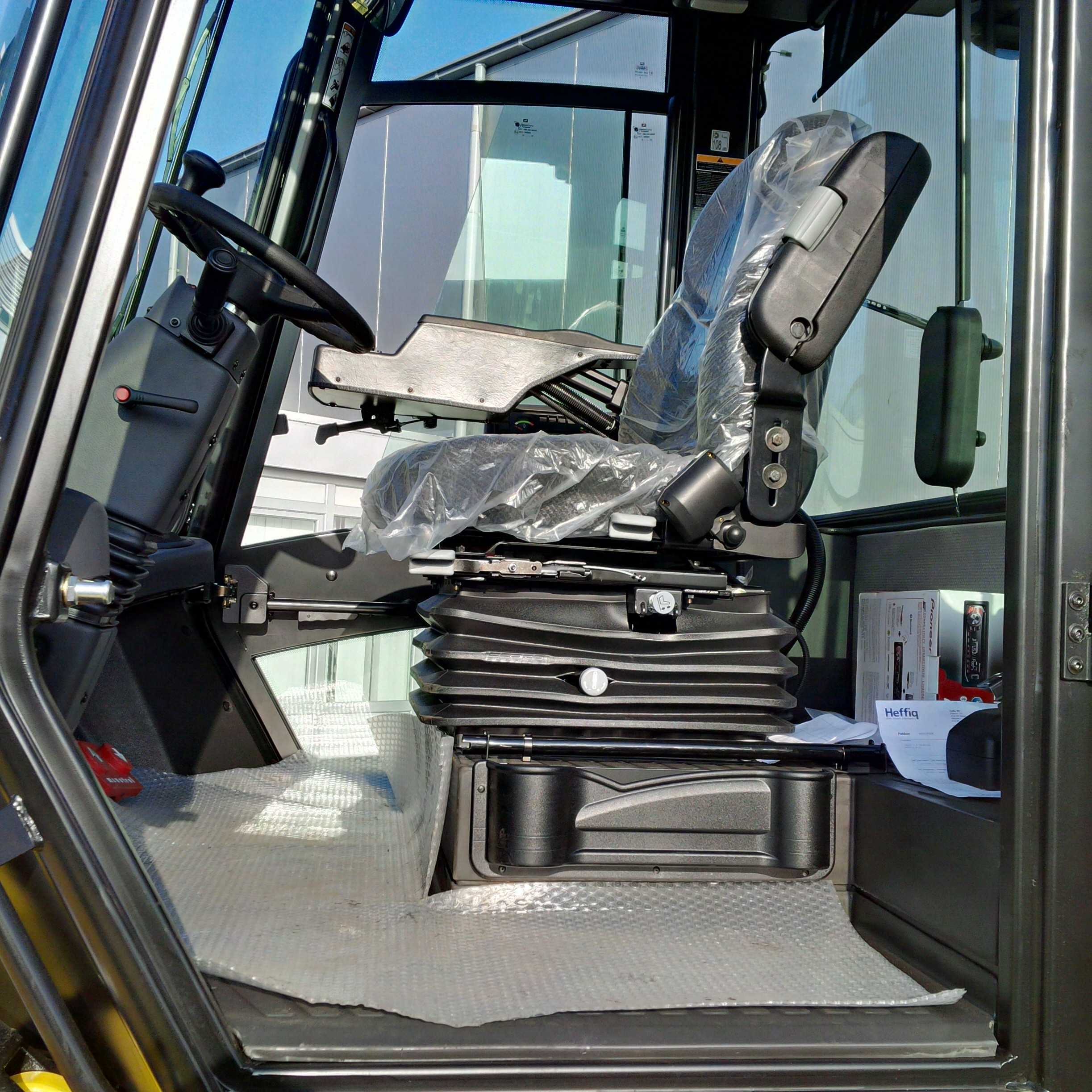 Deze nieuwe 16 tonner heeft een lastzwaartepunt op 600 mm. De krachtbron van deze machine is een Cummins 6,7 liter 6-cilinder. Het vorkenbord is voorzien van een vorkversteller met seperate sideshift waardoor aanrijdt fouten kunnen worden gecorrigeerd. Wij wensen onze klant veel werkplezier met deze machine!