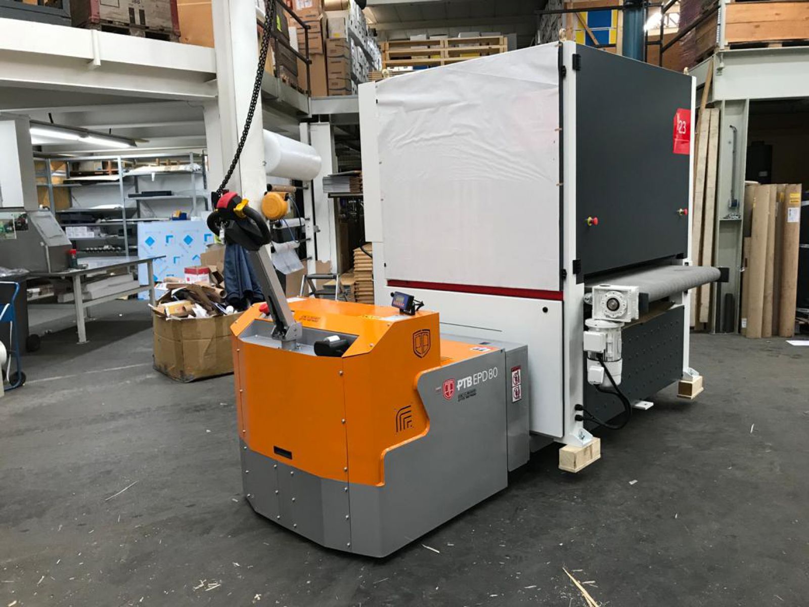 De pallettruck (PTB EPD80) wordt ingezet om grote zware machines te verplaatsen en heeft hiervoor een hefvermogen van 8.000 Kg!