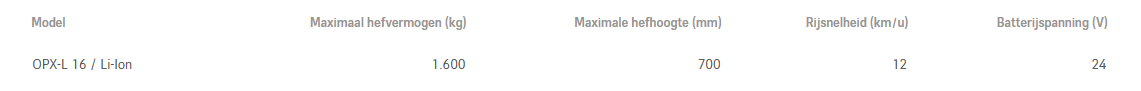 De OPX-L 16 combineert kracht en wendbaarheid. Dankzij het compacte ontwerp transporteert u twee pallets tegelijk met maximale efficiëntie. Het Easy Drive-stuur zorgt voor soepele besturing, terwijl de korte wielarmen ook stapelen tot 790 mm mogelijk maken. Een veelzijdige allrounder voor elke magazijnomgeving.