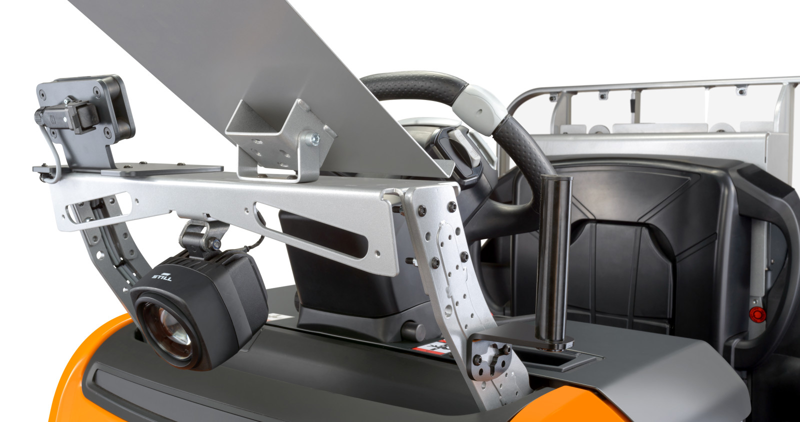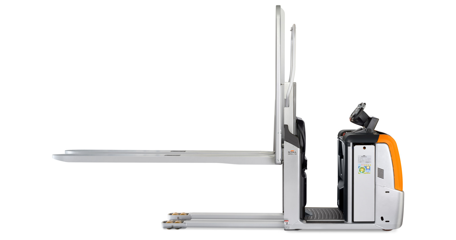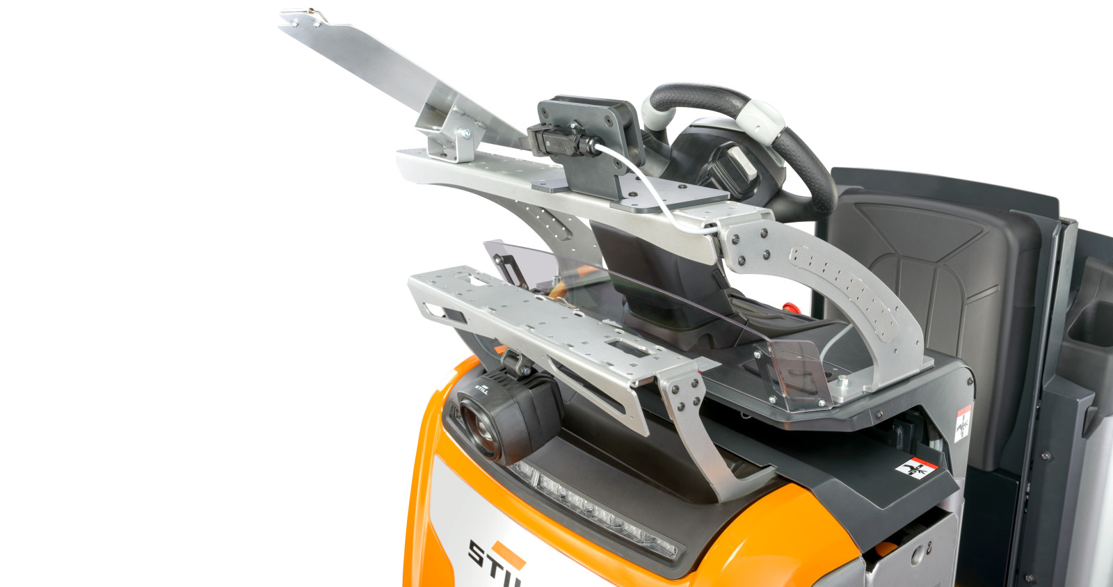 De lage instap en LED-verlichting vergroten zicht en comfort. Curve Speed Control en Dynamic Drive Control zorgen voor stabiele bochten. Het veiligheidsconcept beschermt medewerkers en voorkomt schade, zelfs bij handmatige bediening.