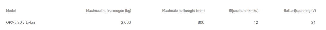 De OPX-L 20 maakt doorpicken eenvoudig: werk met twee pallets tegelijk en bespaar tijd bij elke order. Met een werkhoogte tot 891 mm pickt u ergonomisch tot 2.000 kg. Dankzij het lage zwaartepunt en de hoge stabiliteit transporteert u ladingen snel en veilig, zelfs op krappe routes.