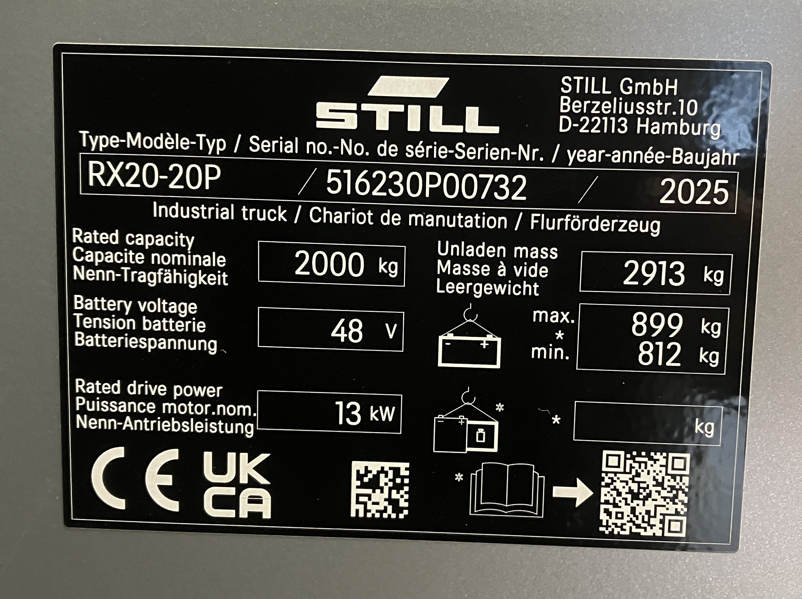 Nieuwe STILL RX 20-20P/ triplo mast/ 4 functies/ voorruit/ dakruit/ kruishendels/ Durwen RZV 20 S/ Fronius lader/ flitslicht