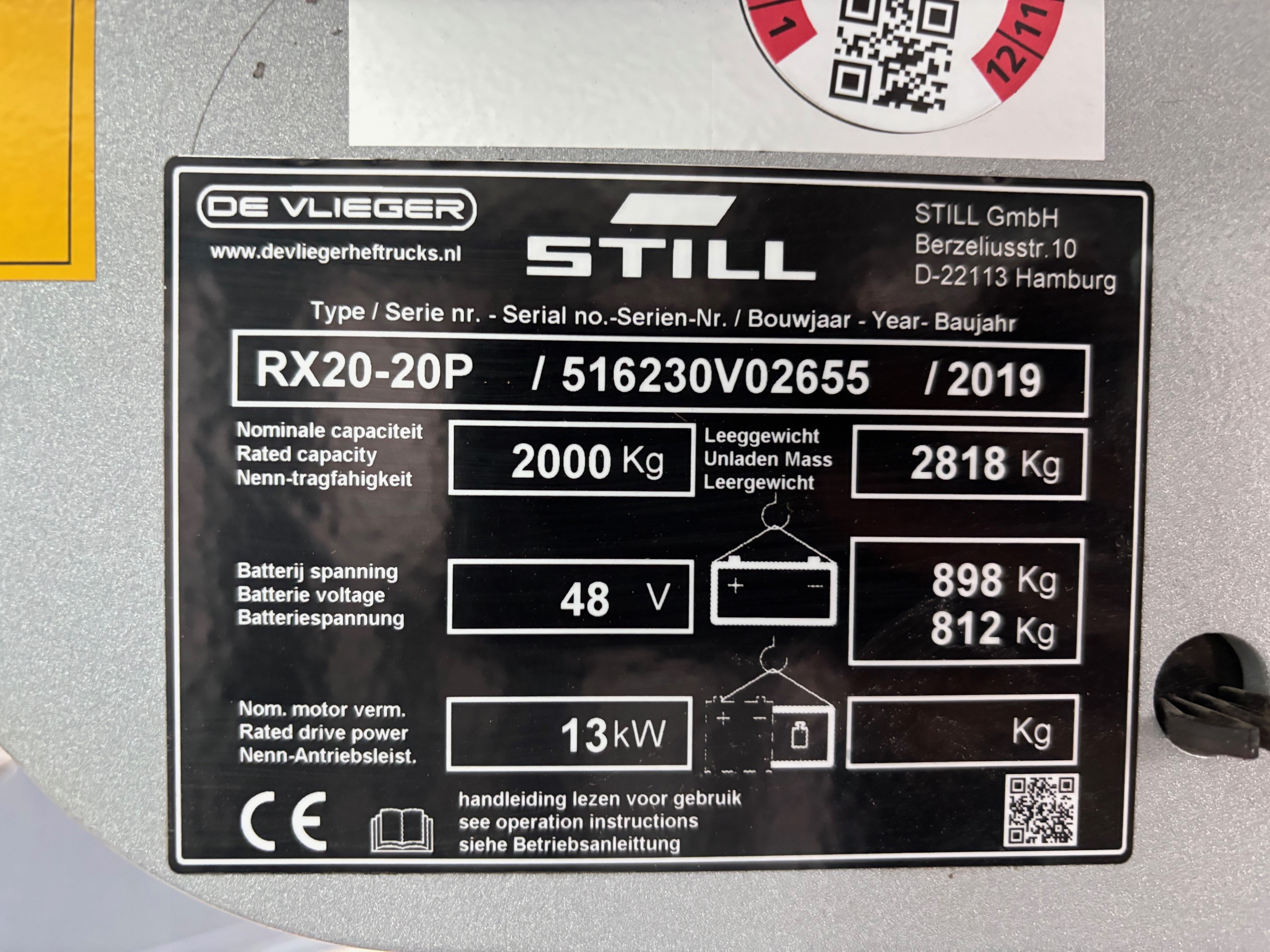 STILL RX 20-20P van 2019 / Triplo 2460/5680 mm mast / 4 functies / Non-marking banden