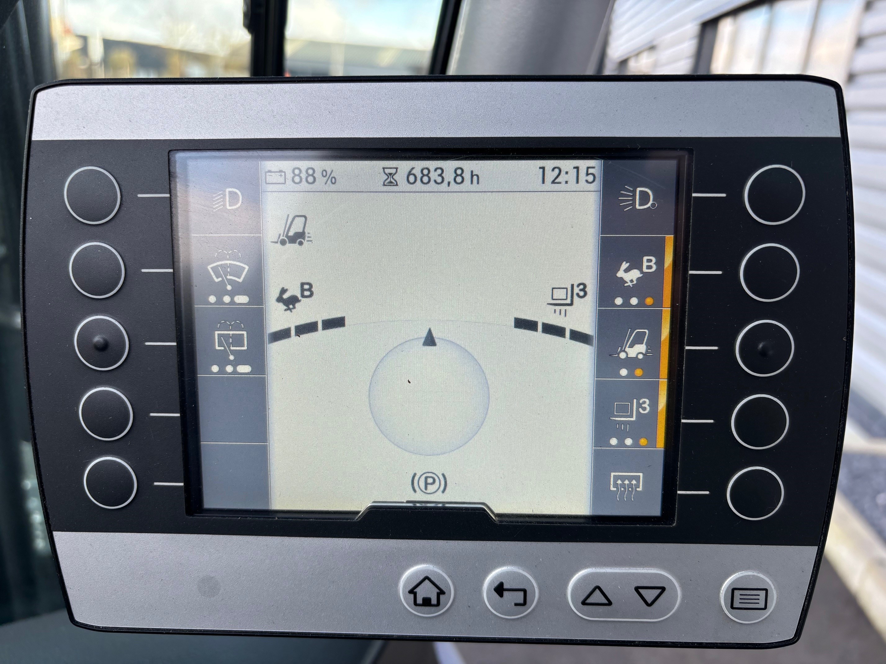 Integrale sideshift / Voor-, dak-, en achterruit / hydraulische bedieningshendels / flitslamp / schijnwerpers voor en achter / Verlichting met knipperen / safety light