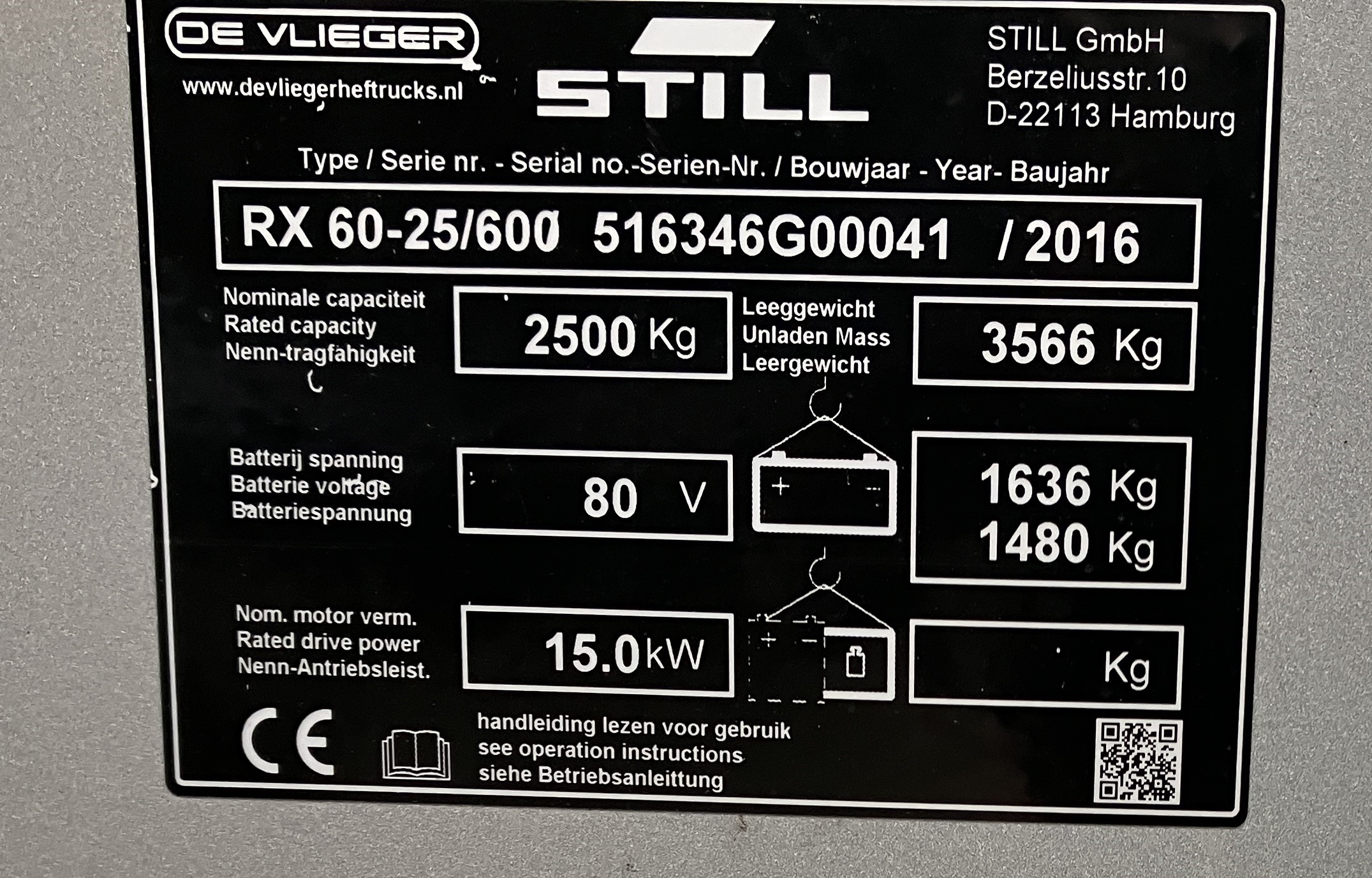 Gebruikte STILL RX 60-25/600 - bouwjaar 2016 - open cabine - led verlichting voor en achter - triplo mast - blue spot.