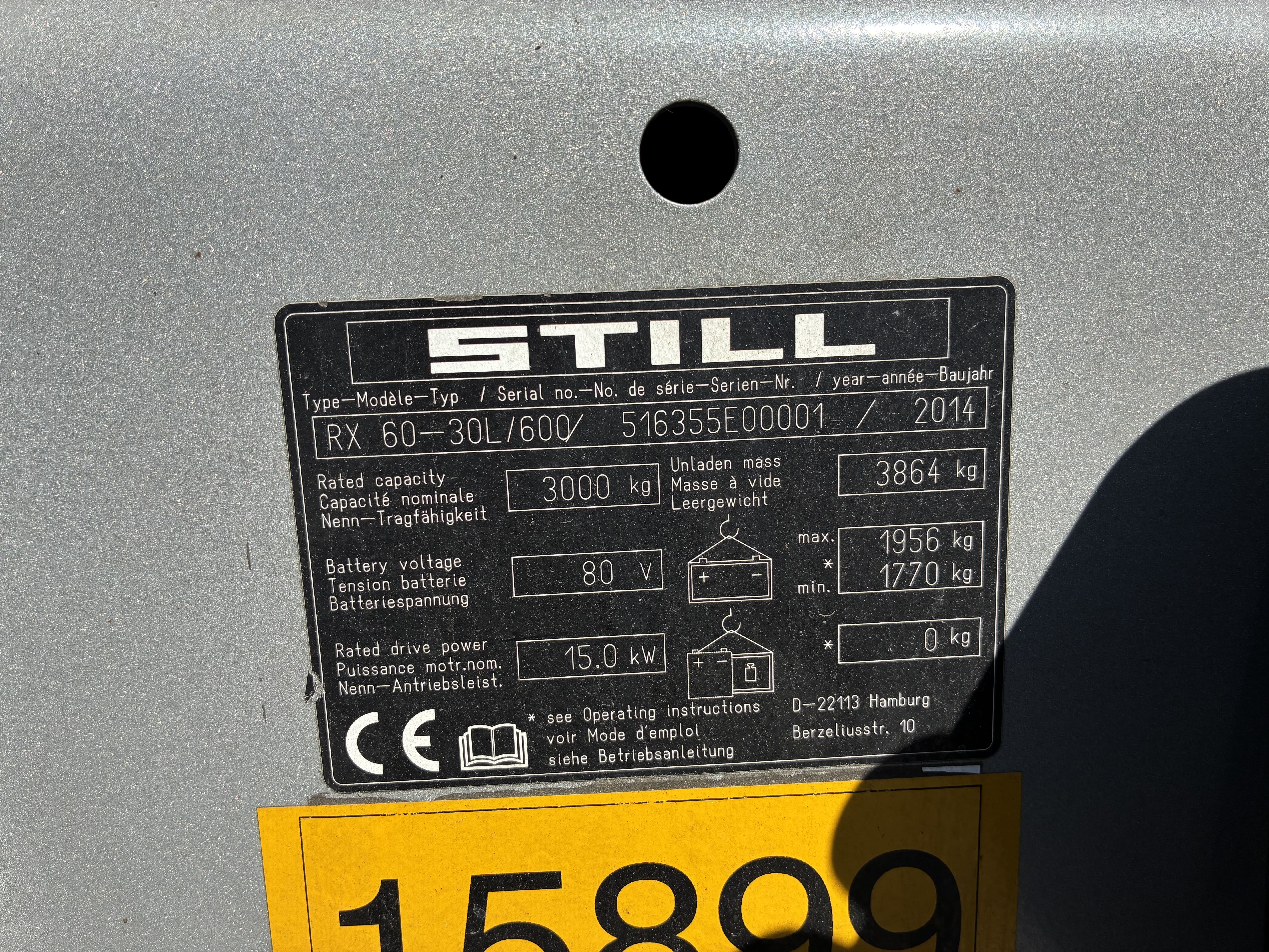 Zeer rijk uitgeruste STILL RX 60-30/600 met lage urenstand - triplo mast - joystick bediening - 4 hydraulische functies - dakruit - non-marking banden - leren stoel - stoelverwarming - elektrische parkeerrem - schijnwerpers - blue spot - miniconsole - buitenspiegels.