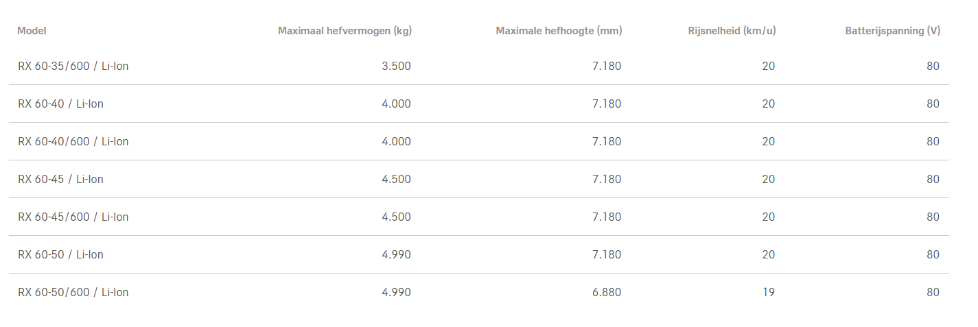 Dit is een energieke piekspeler in de gewichtsklasse van 3,5 tot 5,0 ton. De RX 60-35/50 kan elke uitdaging aan en onthult zijn capaciteiten vanaf de eerste seconde: tillen, versnellen en bewegen in de beste tijd. U ervaart een ongelooflijk intuïtieve interactie met het voertuig terwijl het u actief ondersteunt in uw werk met slimme assistentiesystemen.