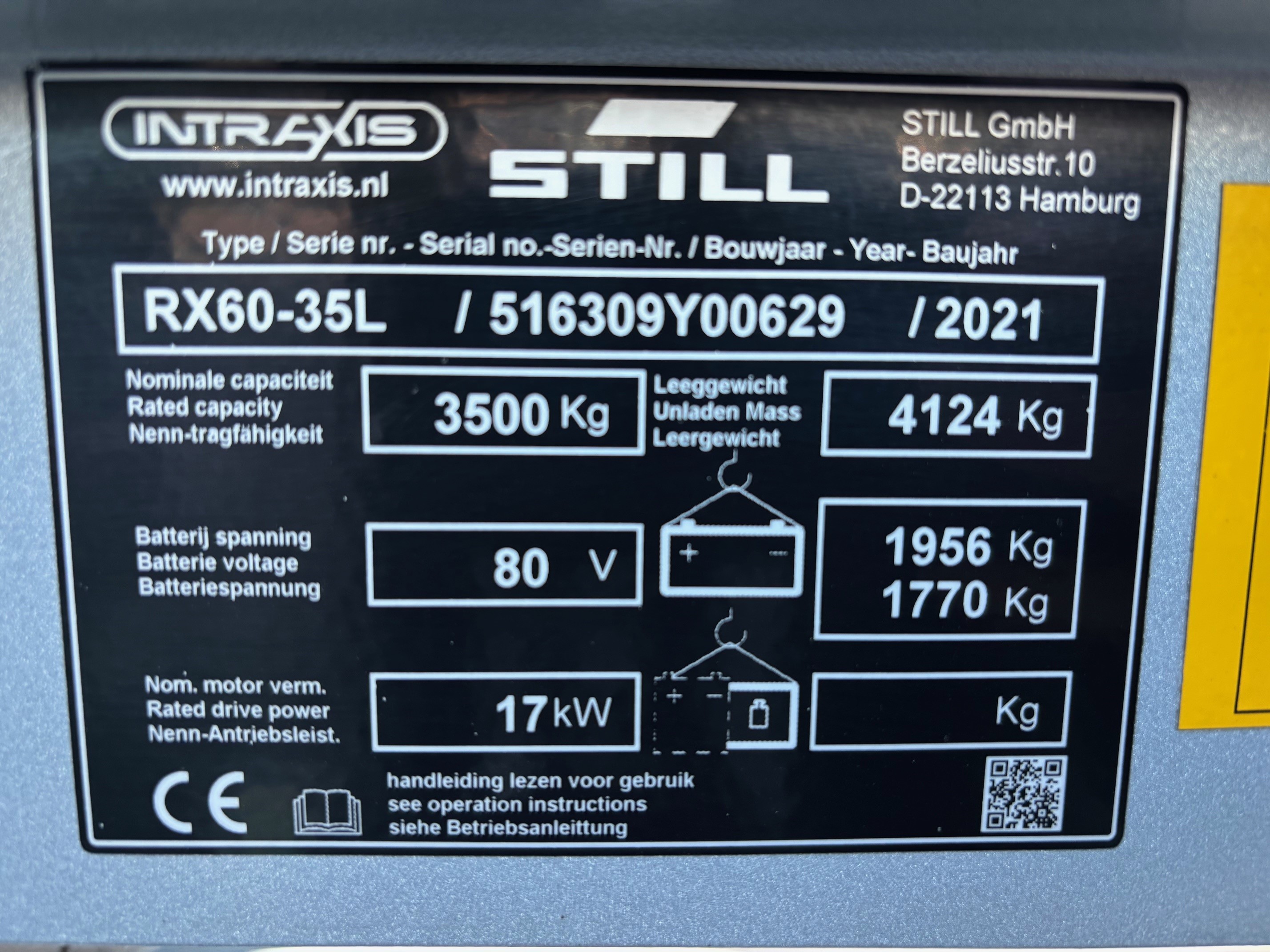 STILL RX 60-35L, beschikbaar voor verhuur en verkoop. Mooie uitvoering met o.a. 4 functies / triplo mast / luxe stoel / kruishendels / LED schijnwerpers / Blue spot
