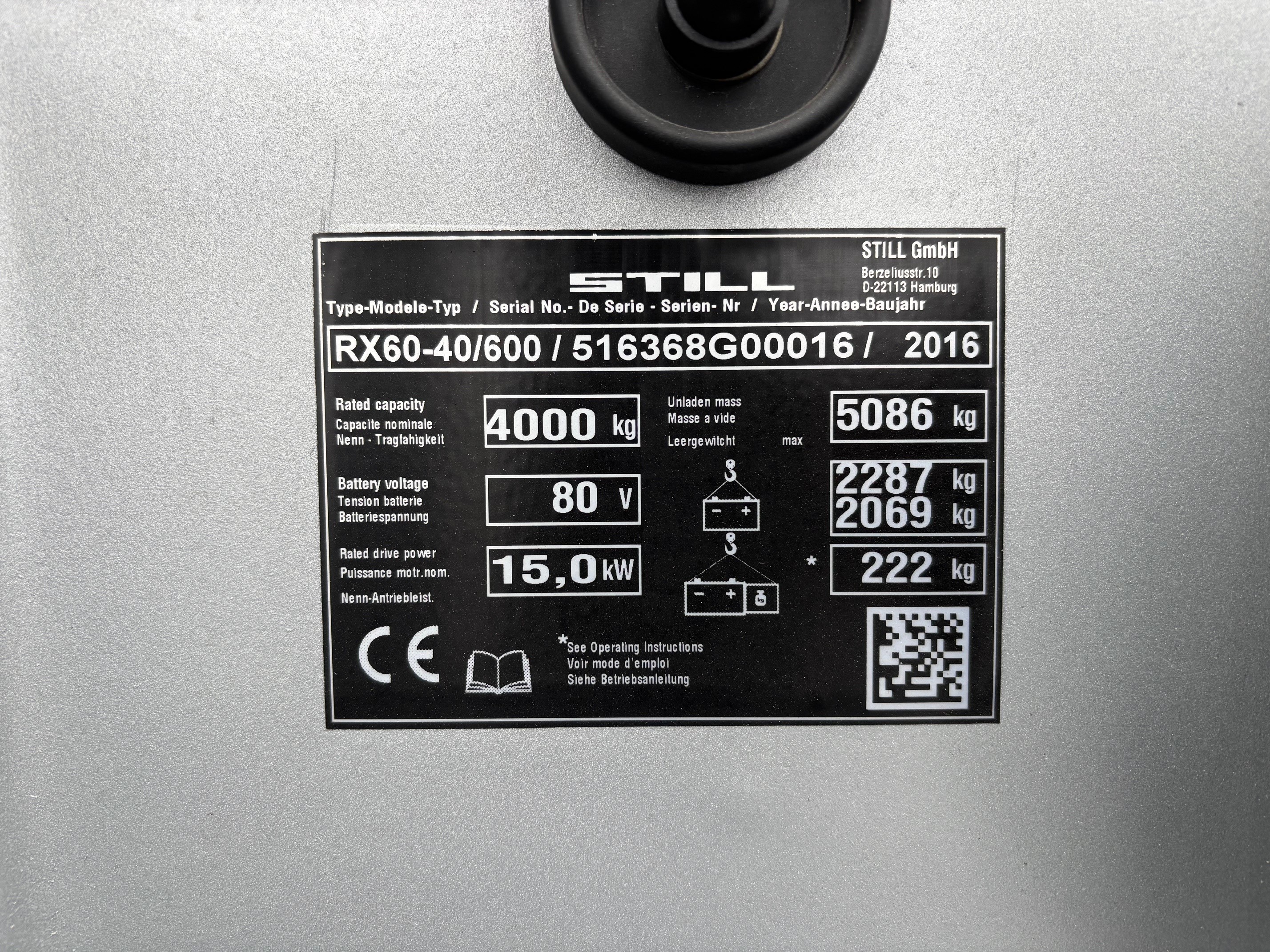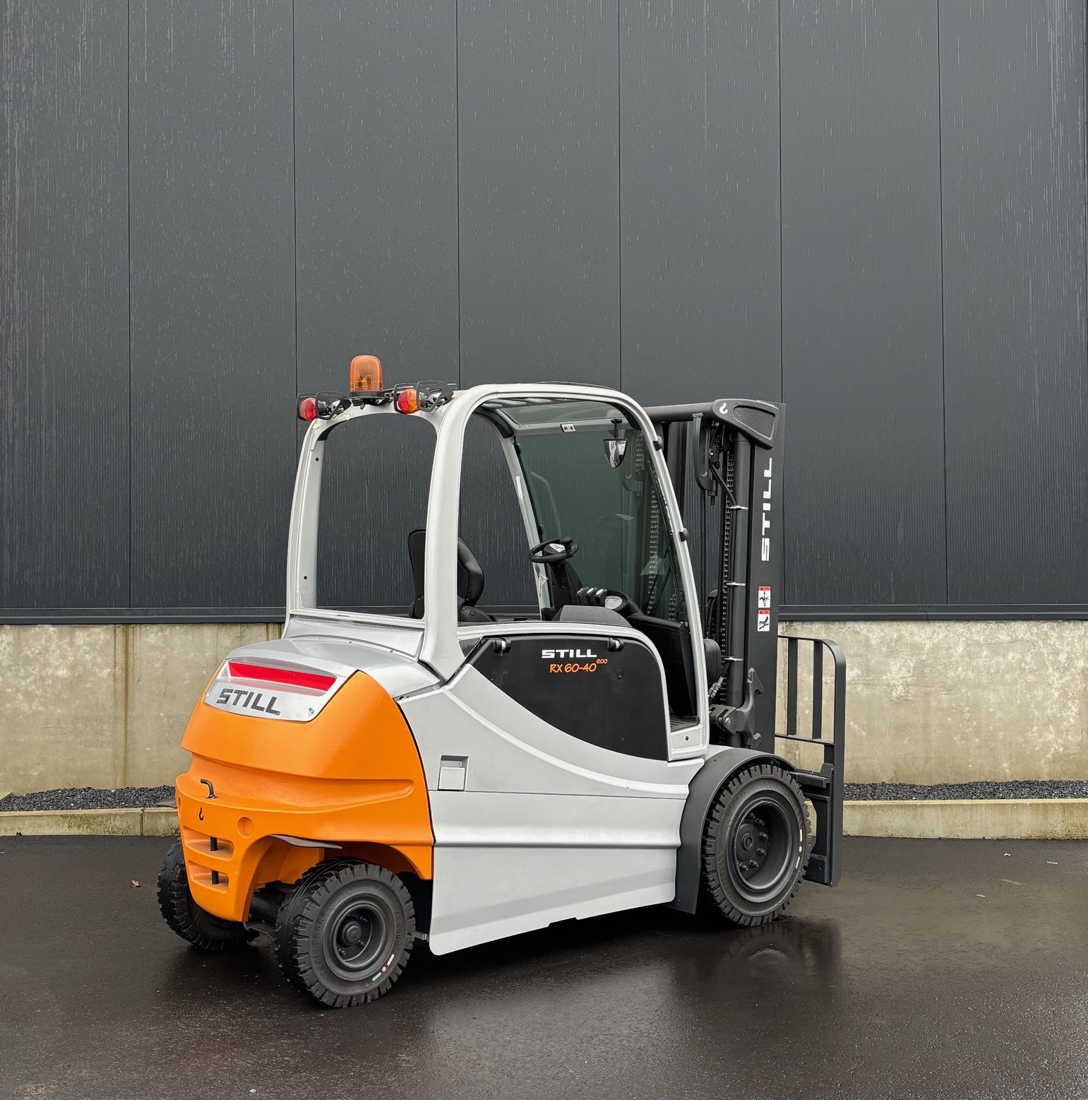 Nieuwe batterij / integrale sideshift / hydraulische bedieningshendels / normale verlichting / zwaailamp / voor-, en achterruit / ladingsbeschermrek